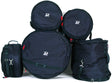 Sæt med tasker til trommer. Fremstillet i slidstærkt nylon med lynlåse og 15 mm polstring. Taskerne er udstyret med skulderremme og læderbeklædt håndtag. Derudover giver yderlommen mulighed for at opbevare et bækken eller ekstra trommeskind.