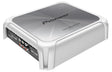 Forstærkeren har et slankt, hvidt design med en børstet aluminiumsplade, der passer godt ind i bådens æstetik. Dens kompakte størrelse gør det nemt at finde plads til den, selv i trange rum.