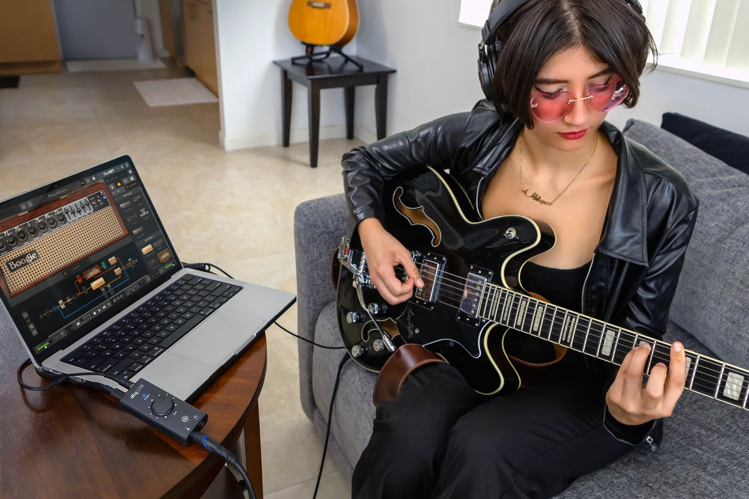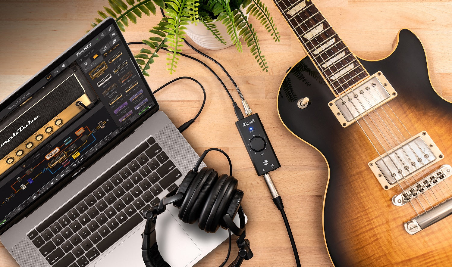 - Udstyret med et slankt design med USB-C-forbindelse og den seneste forstærker- og effektmodelleringsteknologi fra IK.