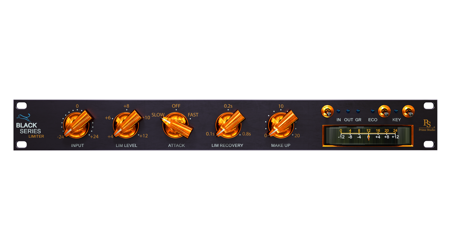 - classic functionality of an analog limiter: Input, Limit Level, Attack, Recovery, Makeup Gain