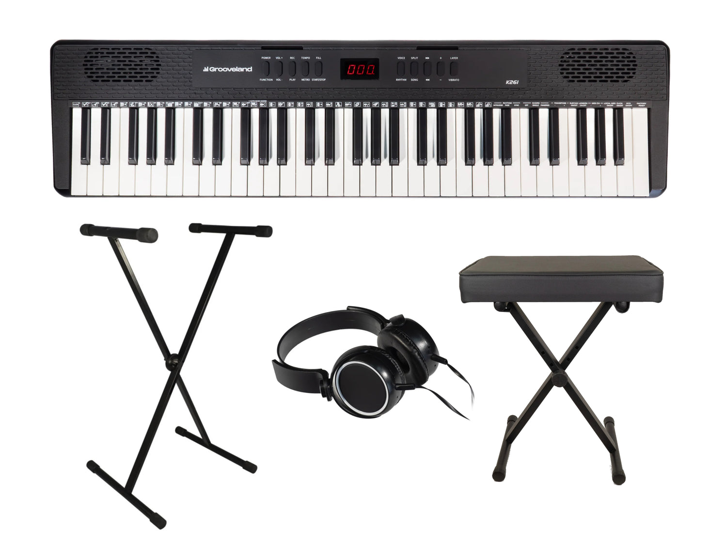 Grooveland E261 Keyboard Startpakke er den ideelle løsning til begyndere og øvede musikere, der vil i gang med at spille med det samme. Denne komplette pakke indeholder: