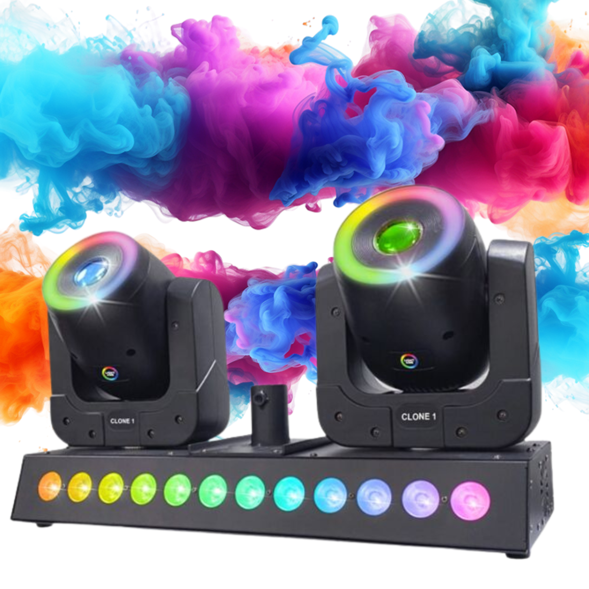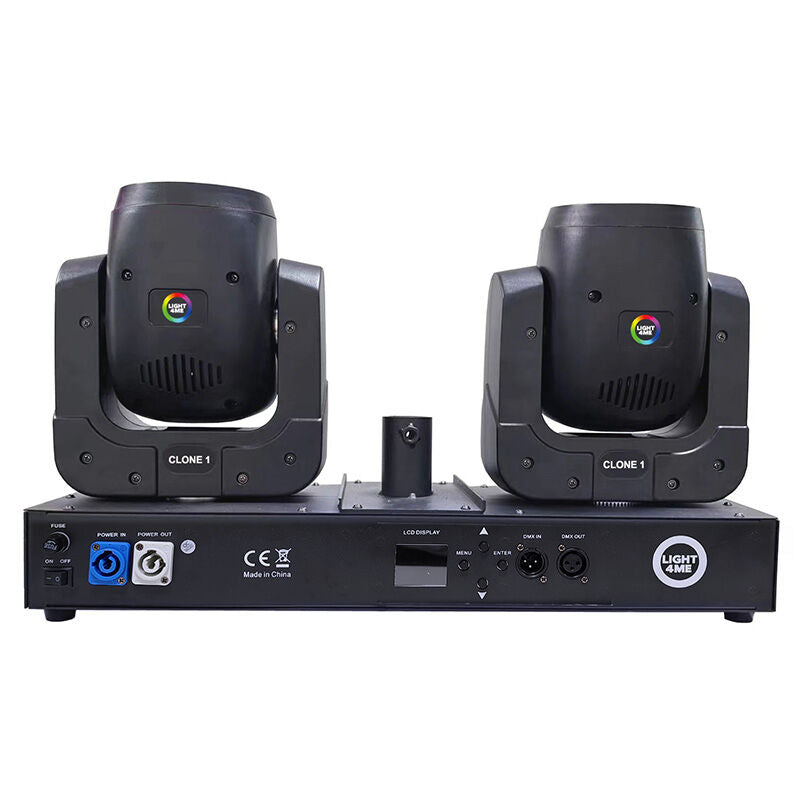 Light4Me Clone 1 er en kraftfuld og alsidig LED lyseffekt med to moving heads, designet til professionelle lysopsætninger på scener, i klubber og til events. Med sit dynamiske design og avancerede lysfunktioner er denne enhed perfekt til DJs, bands, eventarrangører og mobile lysinstallationer.