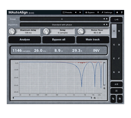 Siden version 11.02 udfører MAutoAlign noget tidligere ubegribelig - det retter faktisk fasen for hver frekvens i alle spor, hvis du beder om det. Under analysen estimerer det nu ikke kun de ideelle forsinkelser og polaritet, men også den ideelle faserotation for at minimere aflysninger. Dette betyder, at det kan kompensere for faseforskelle forårsaget af den 3D-natur, som instrumenterne der optages har, af mikrofonerne og andet optageudstyr, og endda behandling, du udfører før MAutoAlign. Så nu kan du faktisk equalize sporene uden at bekymre dig om faseaflysninger!