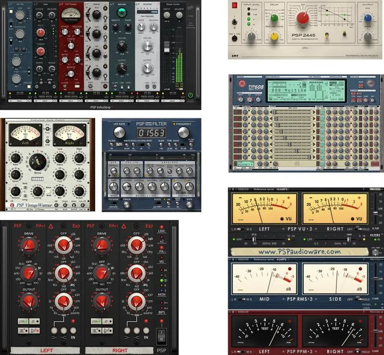 PSP Audioware har gjort sig bemærket som en af nutidens mest anerkendte kilder til premium plug-ins og software. Med PSP Audioware Signature Plug-in Bundle får du alle deres bedst sælgende plug-ins på én gang, hvilket giver dig det perfekte værktøj til at løfte din produktion til professionelle resultater. InfiniStrip plug-in er nyttig til mange forskellige applikationer og tilbyder nem organisering af preamps, EQs, compressors og mere med masser af alsidighed. VintageWarmer2 fungerer både som en compressor og limiter og giver dig den type rige og varme analoge behandling, som Sweetwater-ingeniører længes efter i studiet, og E27 plug-in's 3-bands EQ lader dig forme din lyd til perfektion. 2445 EMT og 608 Multi Delay går hånd i hånd og tilbyder henholdsvis lyden af klassiske digitale reverberatorer og uendelige delaymuligheder. Afslut med stompFilter for masser af filtreringsmuligheder og TripleMeter for nem overvågning af lyd, og du får et fuldt udbygget plug-in bundle designet til at fremhæve det bedste i dine projekter.