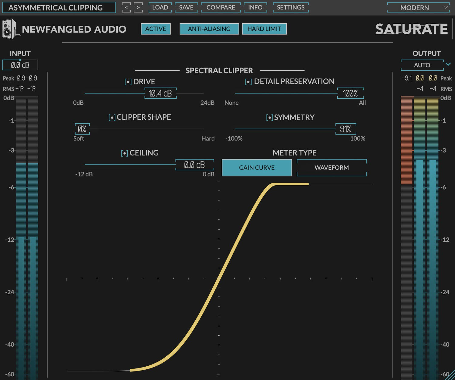 - Saturation Curve Display and Meter shows you how your signal is hitting the selected clipping shape
