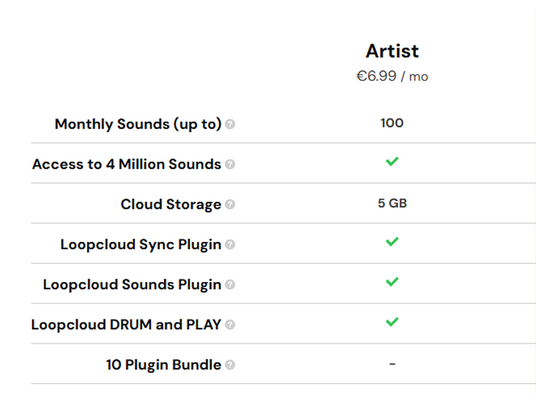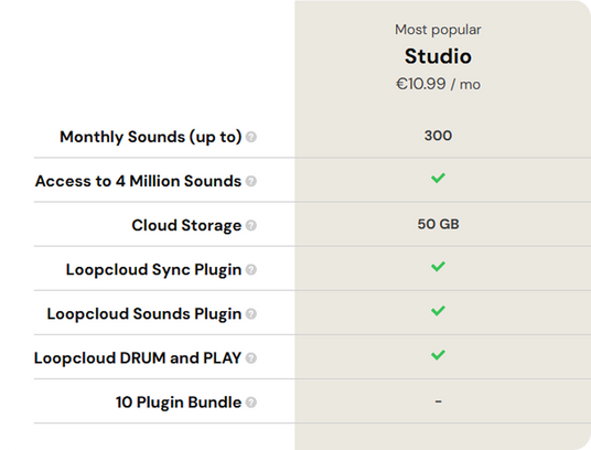 En begrænset mængde cloud-lagring (f.eks. nogle få GB) til at importere dine egne samples eller opbevare dine lyde i skyen.