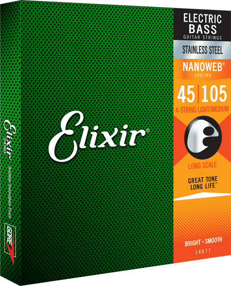 Elixir Nanoweb Stainless Steel Basstrenge (Medium, 4c, 45-105)