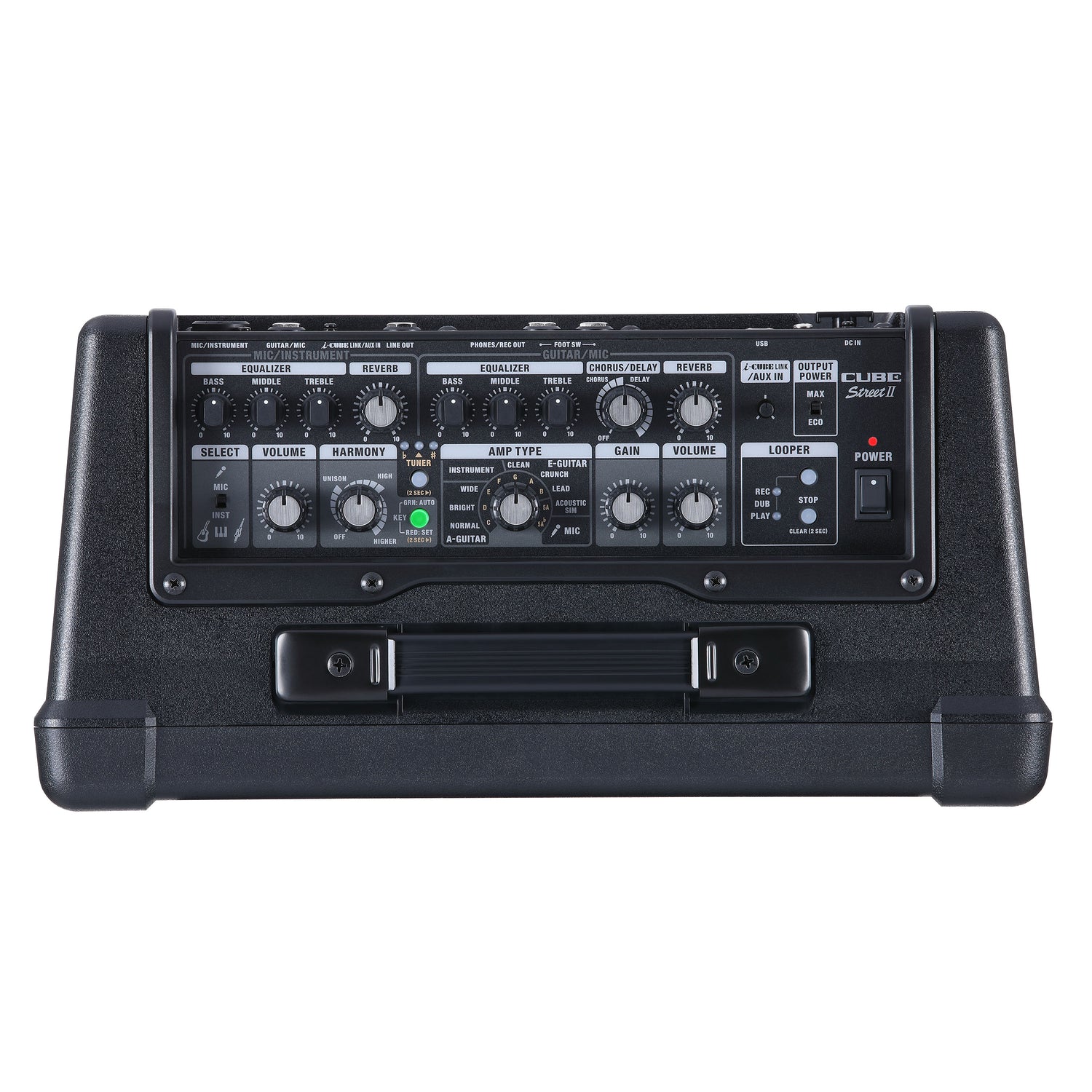 - Mikrofon/guitar kanal med ni forskellige forstærkertyper, trebånds EQ, chorus/delay, reverb og tuner.