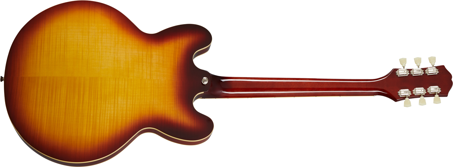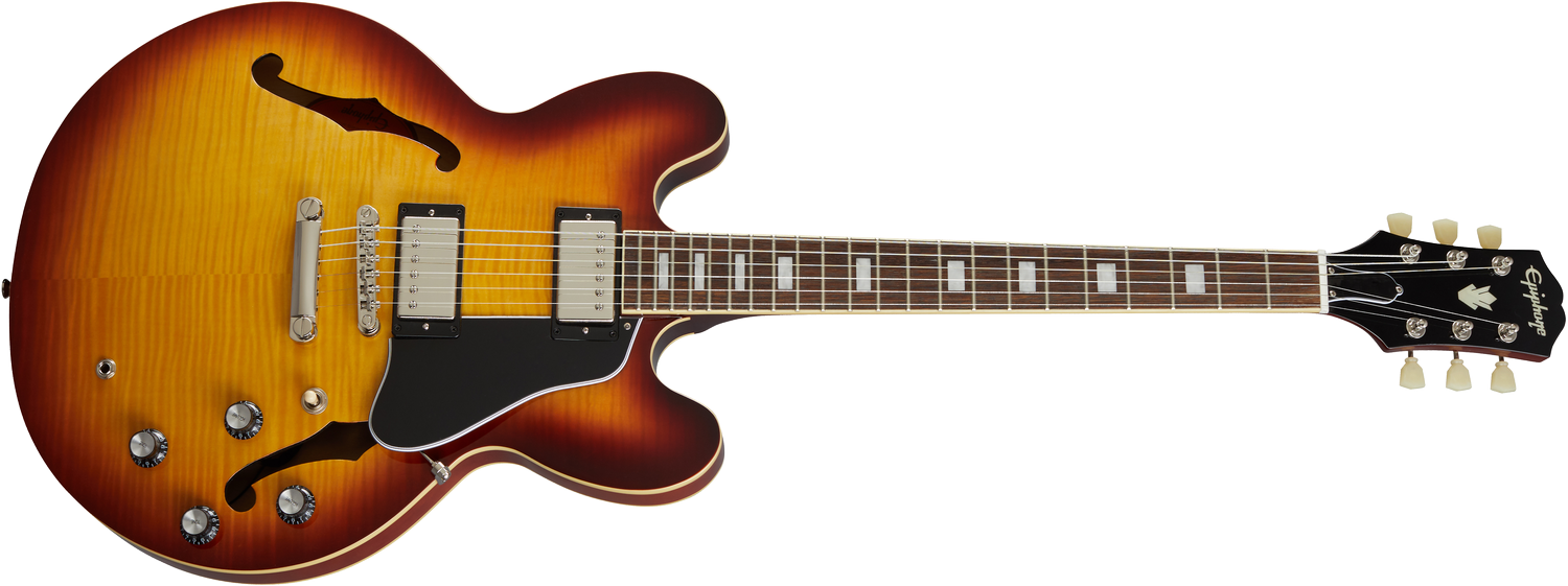 Den legendariske ES-335 i en smuk og glossy version. Epiphone "Inspired by Gibson" ES-335 Figured en en homage til ES-335 med sin tynde semi-hule buetop som var begyndelsen på en ny trend i rock-verdenen. Med en stærk centerblok i ahorn har ES-335'eren god sustain og feedback resistance. En el-guitar der tager kegler i alle sammenhænge. Den tager sig sublimt ud med sin flame ahorn finér top og raspberry tea burst gloss finish.