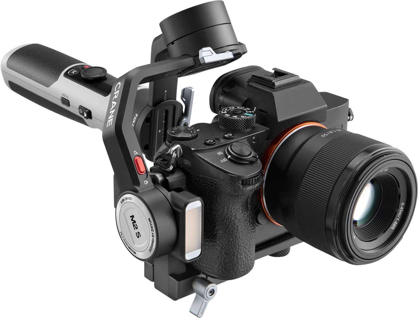 - Crane M2S har den nyeste version af Quick Release, som man finder på Zhiyun's topklasse gimbals.