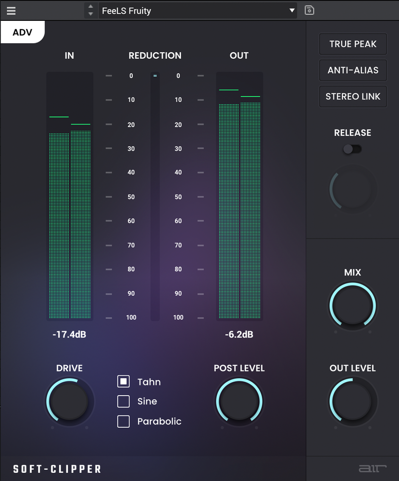 AIR Soft Clipper er ikke bare en anden klon. Inspireret af den originale, genfortolket og optimeret til at give beatmakere og musikproducenter alt, hvad de behøver for at få den ultimative energi fra mixet. AIR Soft Clipper, et værktøj designet til dem, der laver R&B, Rap, Drum and Bass eller edgy Pop — du nævner det. Soft Clipper giver dine numre den høje, men alligevel rene, lyd, der er klar til udgivelse.