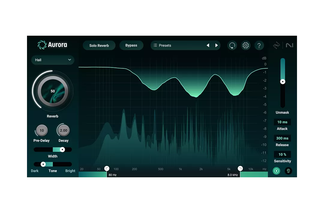 Intelligent reverb for cleaner mixes. Using its state-of-the-art reverb engine and powerful Unmasking section, Aurora reacts to your audio to easily and dynamically unmask instruments and vocals, creating lush, three-dimensional space that won’t drown out your tracks.