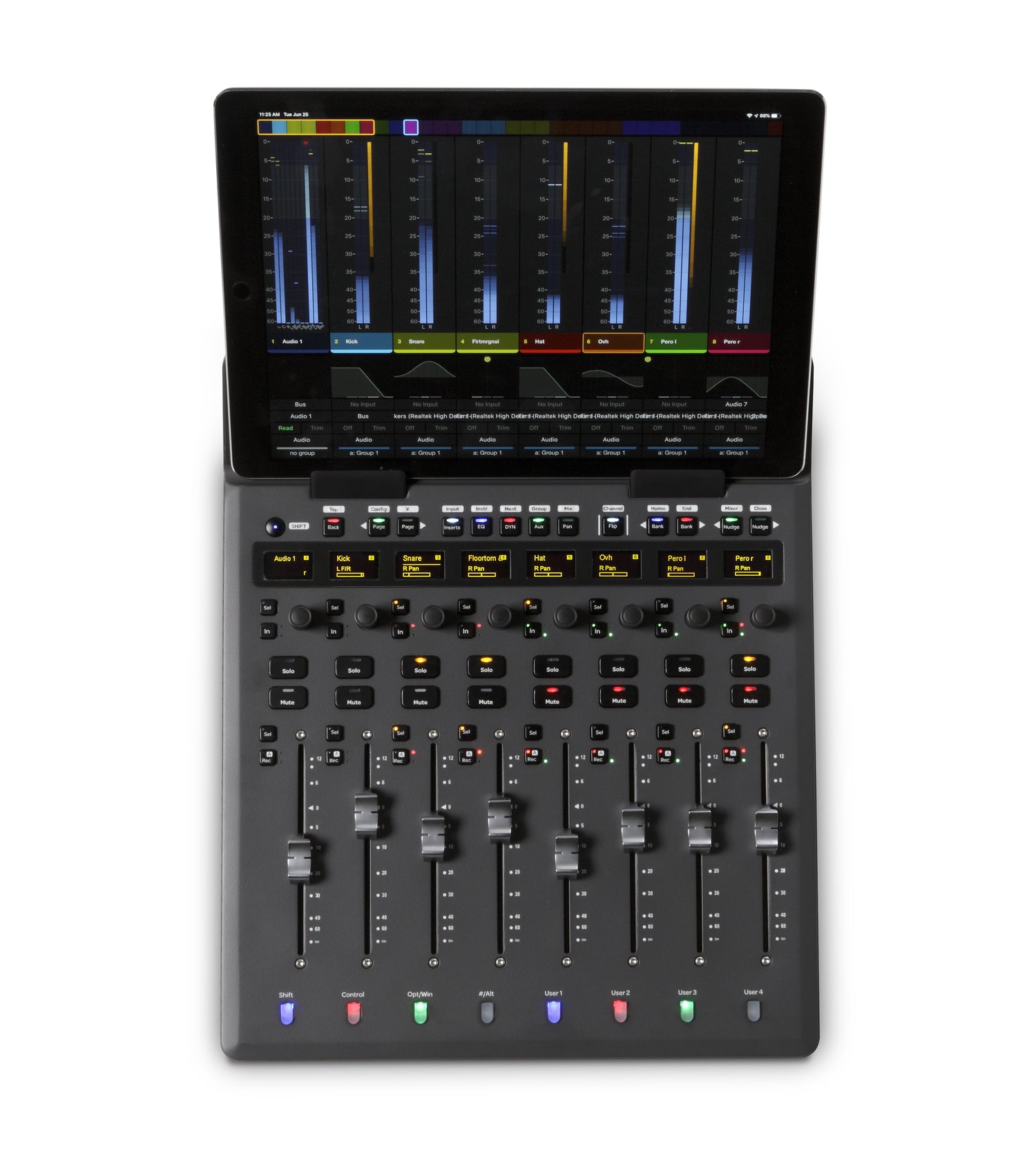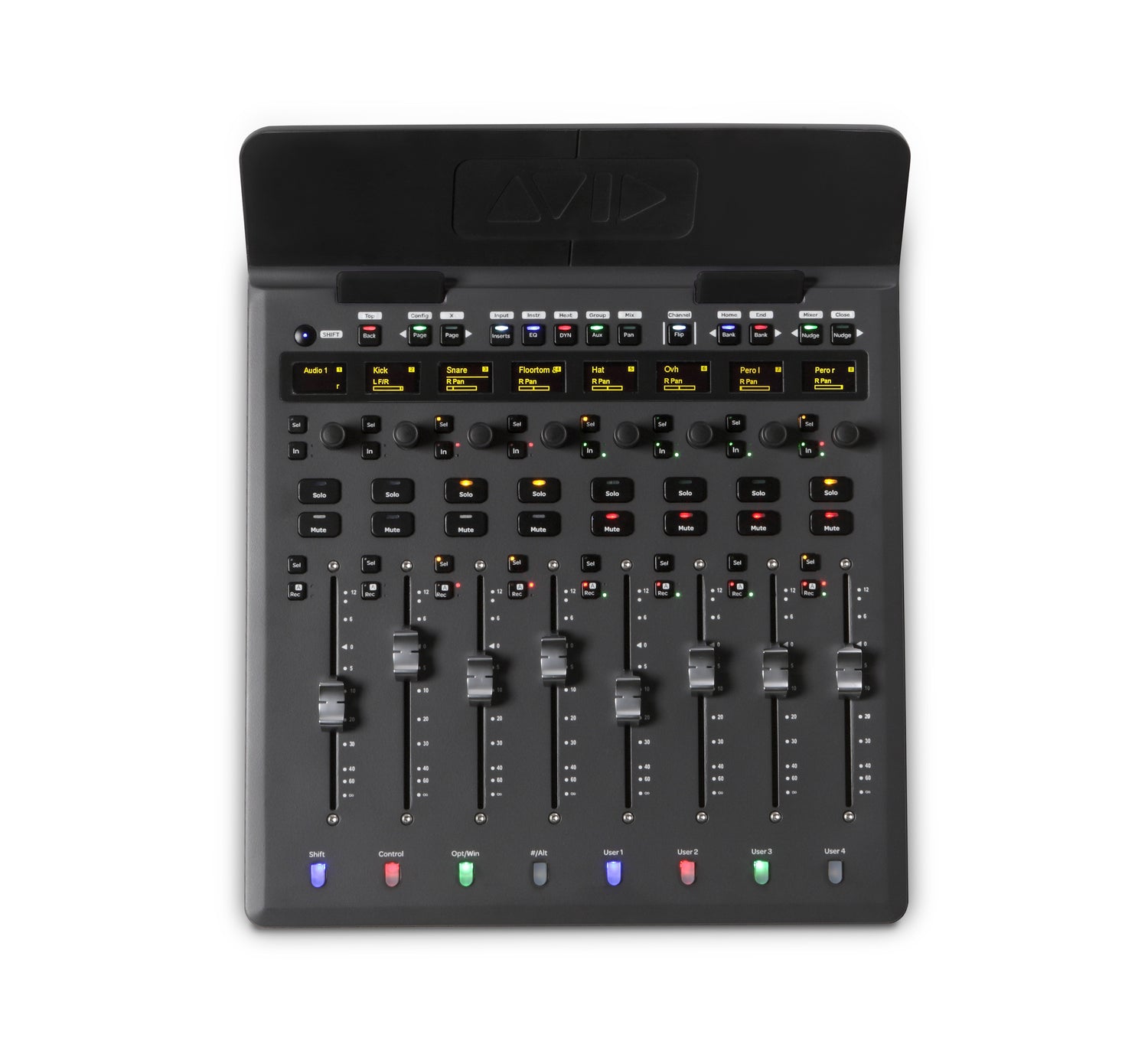 - Eight high-resolution OLED displays, plus multiple status LEDs and multicolor track buttons; channel metering, monitoring, processing, track status, automation modes, and other views provided by Avid Control on your tablet