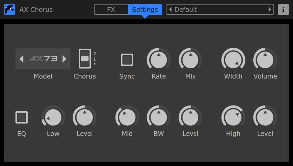 AX Chorus er baseret på ACE modelleret MN3009 Bucket Brigade (BBD) chippen, der findes i både AX73 og AX60 synthesizere. Martinic udviklede deres plugin med chorus 100% det samme som mono indgangsversionerne, der findes i de originale synthesizere, og tilføjede derefter muligheden for at gøre det til en stereo effekt.