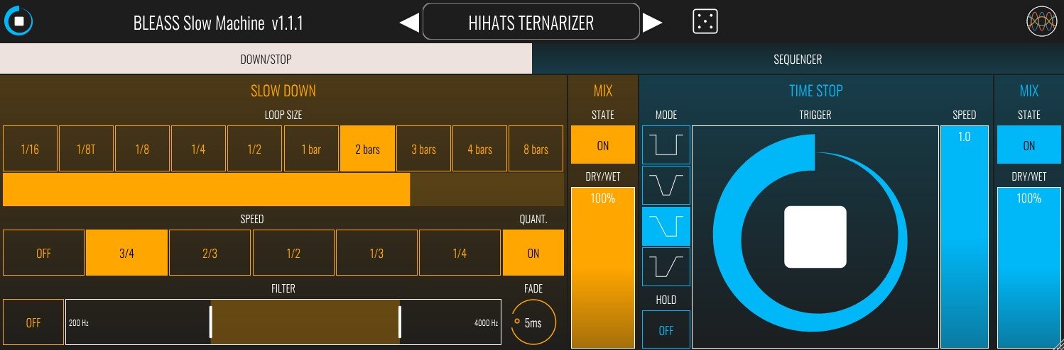 - SLOW DOWN STAGE Transform audio with creative slowdowns. Adjust loop size, speed, and filtering for unique rhythmic and tonal shifts.