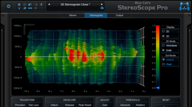 Blue Cat's StereoScope Pro er en realtids stereo feltanalysator med flere visninger og MIDI/automatiseringsudgangsfunktioner. Det er en kraftfuld hjælp til at analysere, hvordan lydsignalet er spredt i stereo feltet, og du kan nemt opdage potentielle fase- og mono-kompatibilitetsproblemer.