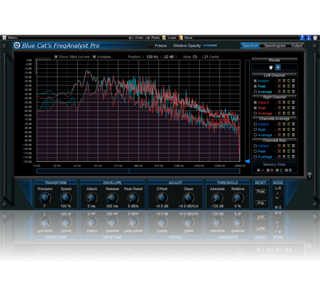 - Mono, stereo or mid/side real time spectrum analyzer.