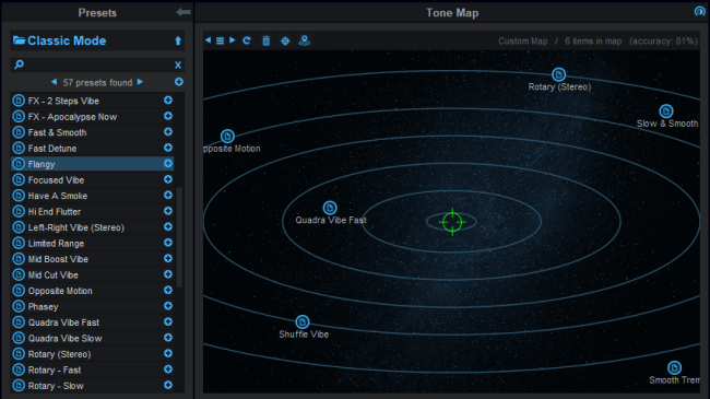 På trods af alle disse ekstra kontroller og muligheder har det aldrig været så nemt at finde din egen tone: Tone Maps hjælper dig med at udforske eksisterende presets og hurtigt skabe nye effekter.