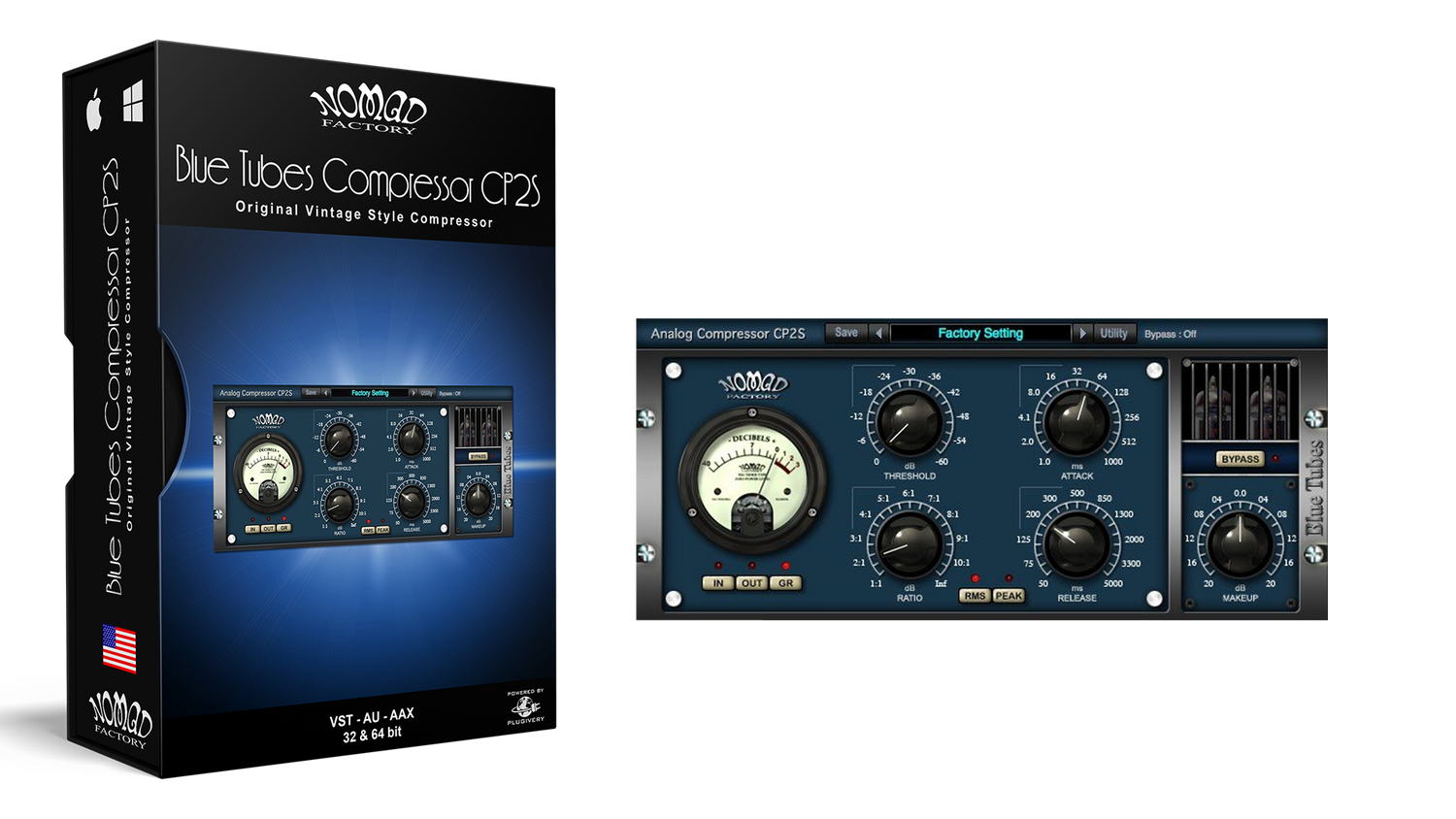 BT Compressor CP2S emulerer analoge rørkompressorer med hensyn til udseende, funktioner og lyd, herunder RMS og Peak kompression.