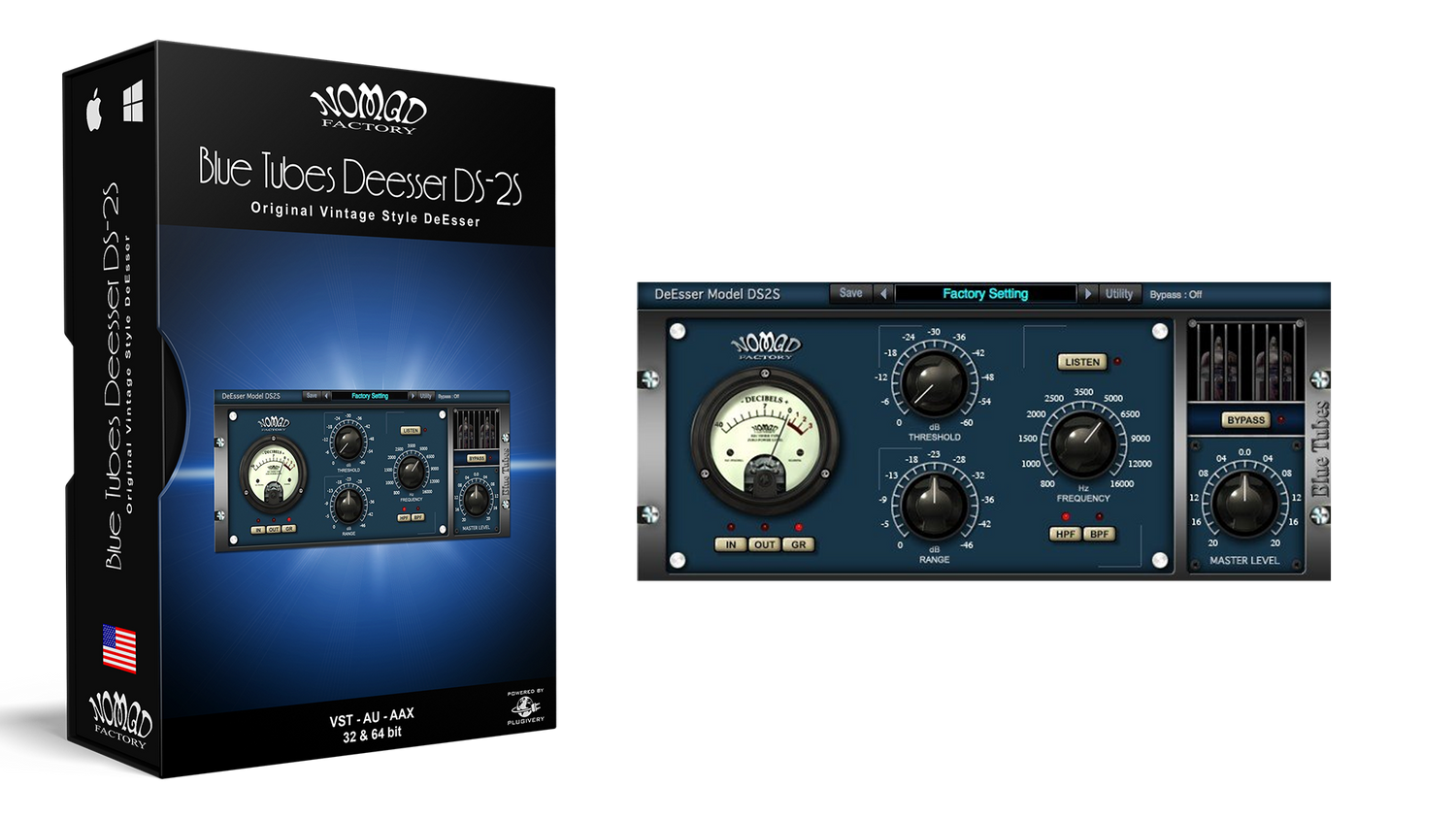 En de-esser fungerer som en frekvensspecifik kompressor. Faktisk er DS2S i bund og grund en kompressor drevet af hi-pass/band-pass filtre. Den reducerer de problematiske høje frekvenser, når niveauet af disse frekvenser overstiger tærsklen. Der er tilføjet Threshold og Frequency skydeknapper samt en Listen vælgerkontakt for kun at høre de frekvenser, der bliver deessed. DS-2S er den ideelle måde at fjerne den uønskede sprødhed fra dine vokalspor.