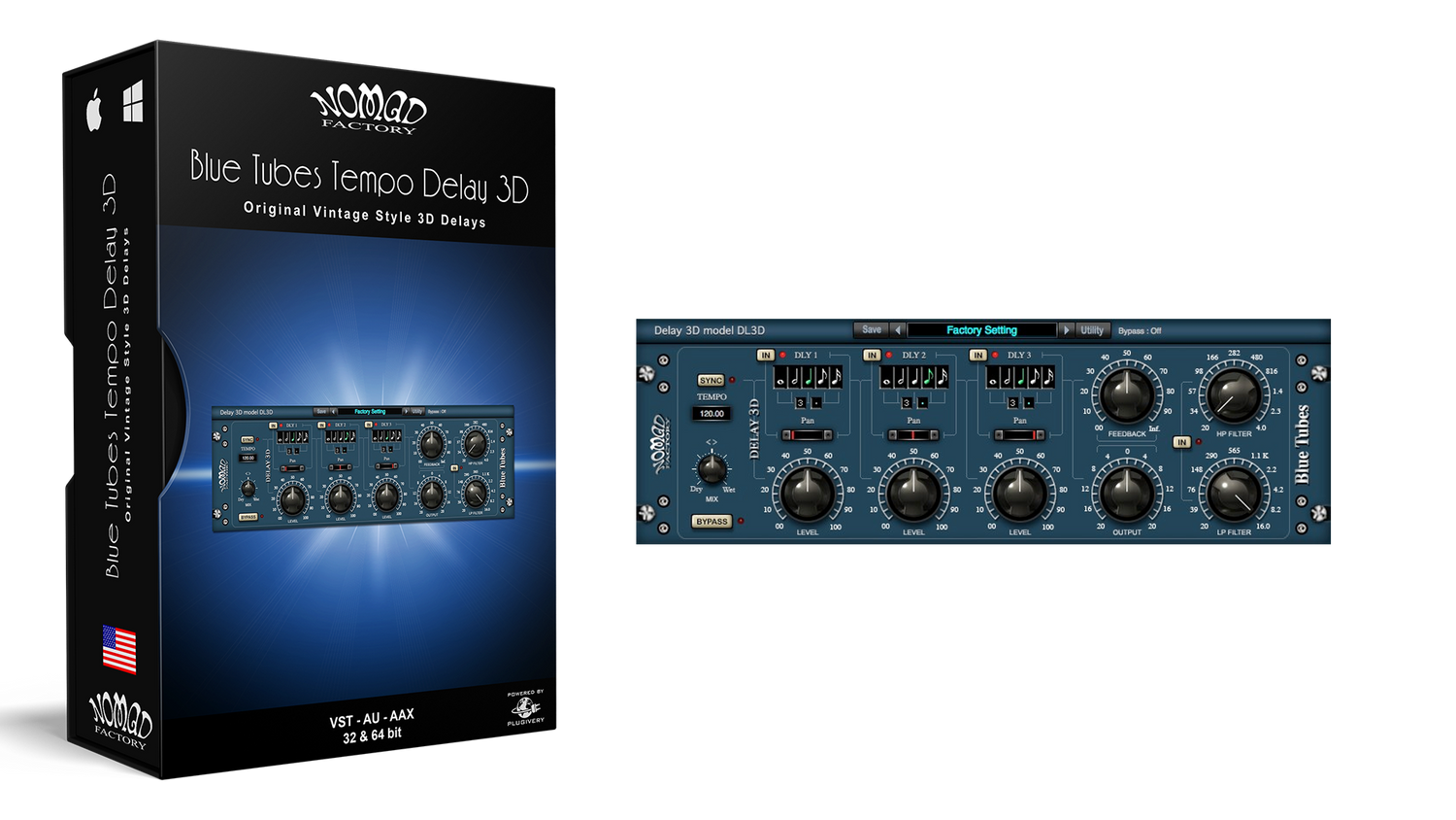 Denne delay tilbyder tre separate kanaler. Ved at bruge Pan-kontrollerne kan du panorere alle tre delay-kanaler til midten eller sprede kanalerne ud over stereo-feltet (venstre, center, højre). Gain-kontrollerne indstiller niveauerne for hver kanal individuelt.