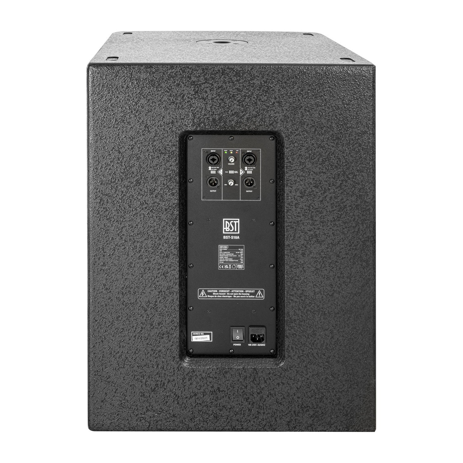 Kabinetkonstruktionen er udført i robust 18 mm multiplex-træ og designet til at tåle hård belastning og transport. Det professionelle udseende og de praktiske håndtag gør den let at integrere i mobile eller faste setups. Med BST-S18A får du en driftssikker, alsidig og kraftfuld subwoofer, der leverer en bundsolid basoplevelse – hver gang.