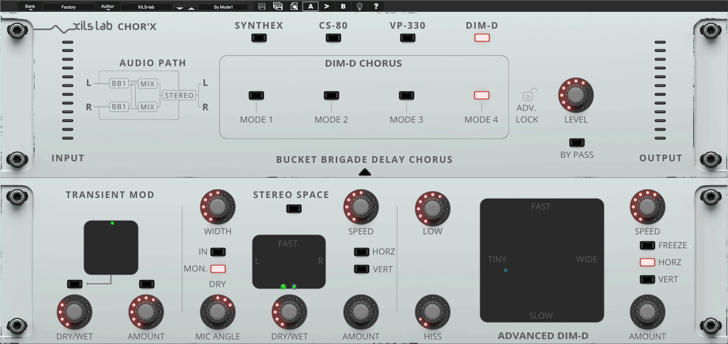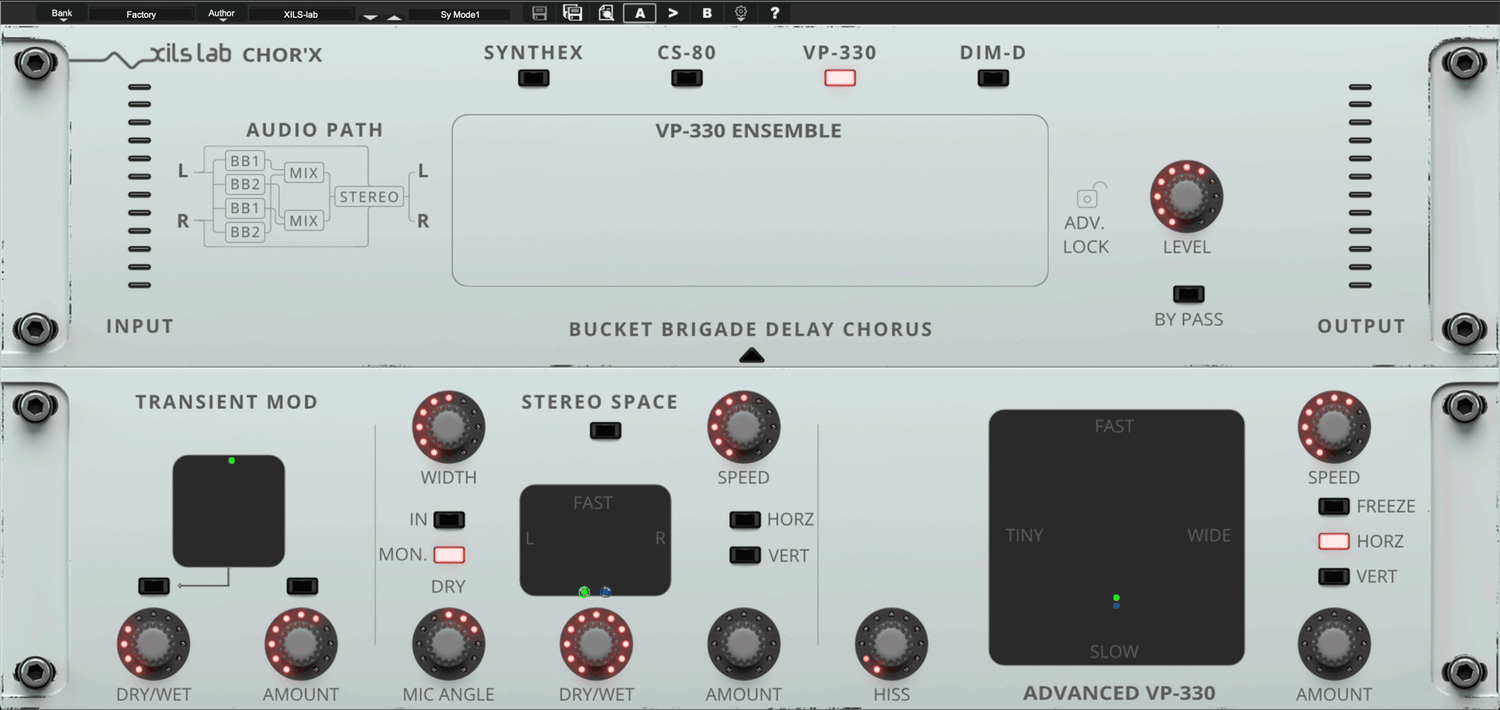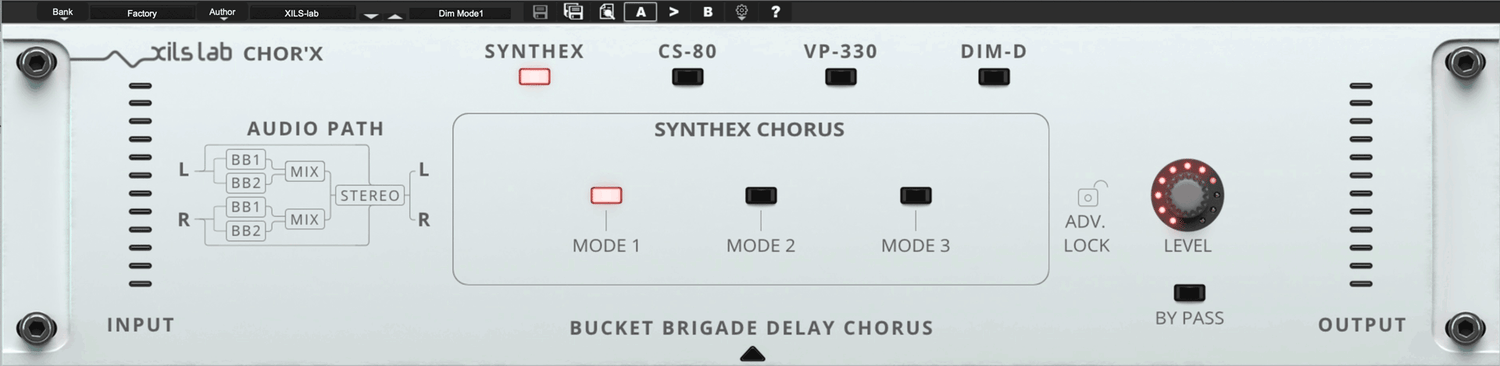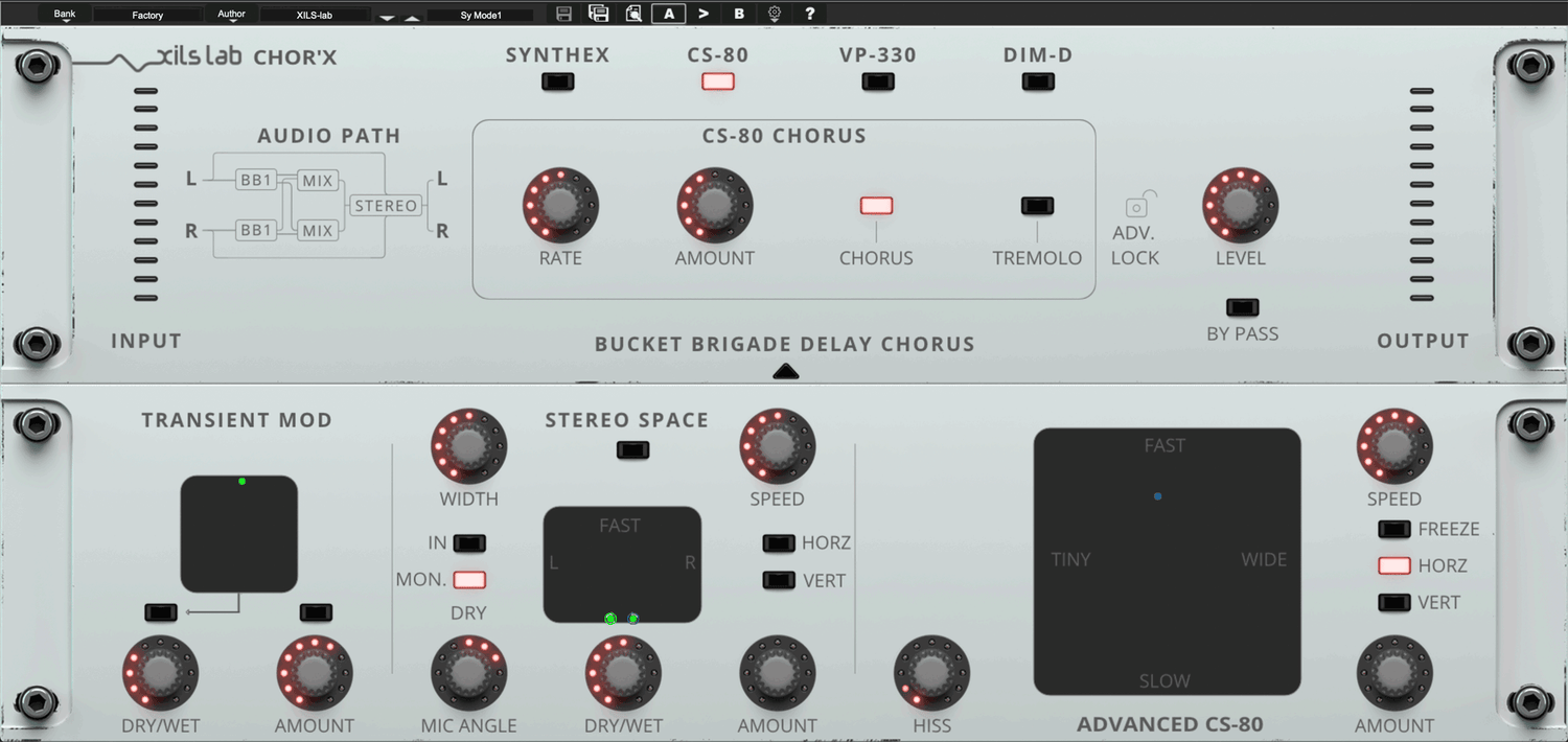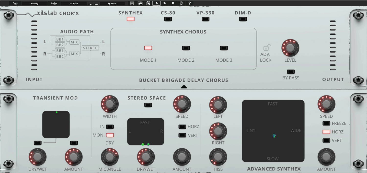 XILS-Lab har gjort en stor indsats for at skabe autentisk lyttende chorus effekter. Efter at have studeret mange vintage chorus enheder og afkodet, hvad der gjorde hver enkelt unik, har de modelleret fire chorus modes (Synthex, CS-80, Dim-D og V+ 330). Chor'X emulerer nogle af de mest berømte arketypiske strukturer, der findes i disse legendariske enheder: 4 BB Delays, 2 BB Delays og 2 BB Delays med fasejusteringer, med eller uden en intern compander. Slip din kreativitet løs og gå amok ved at kombinere disse forskellige chorus effekter!