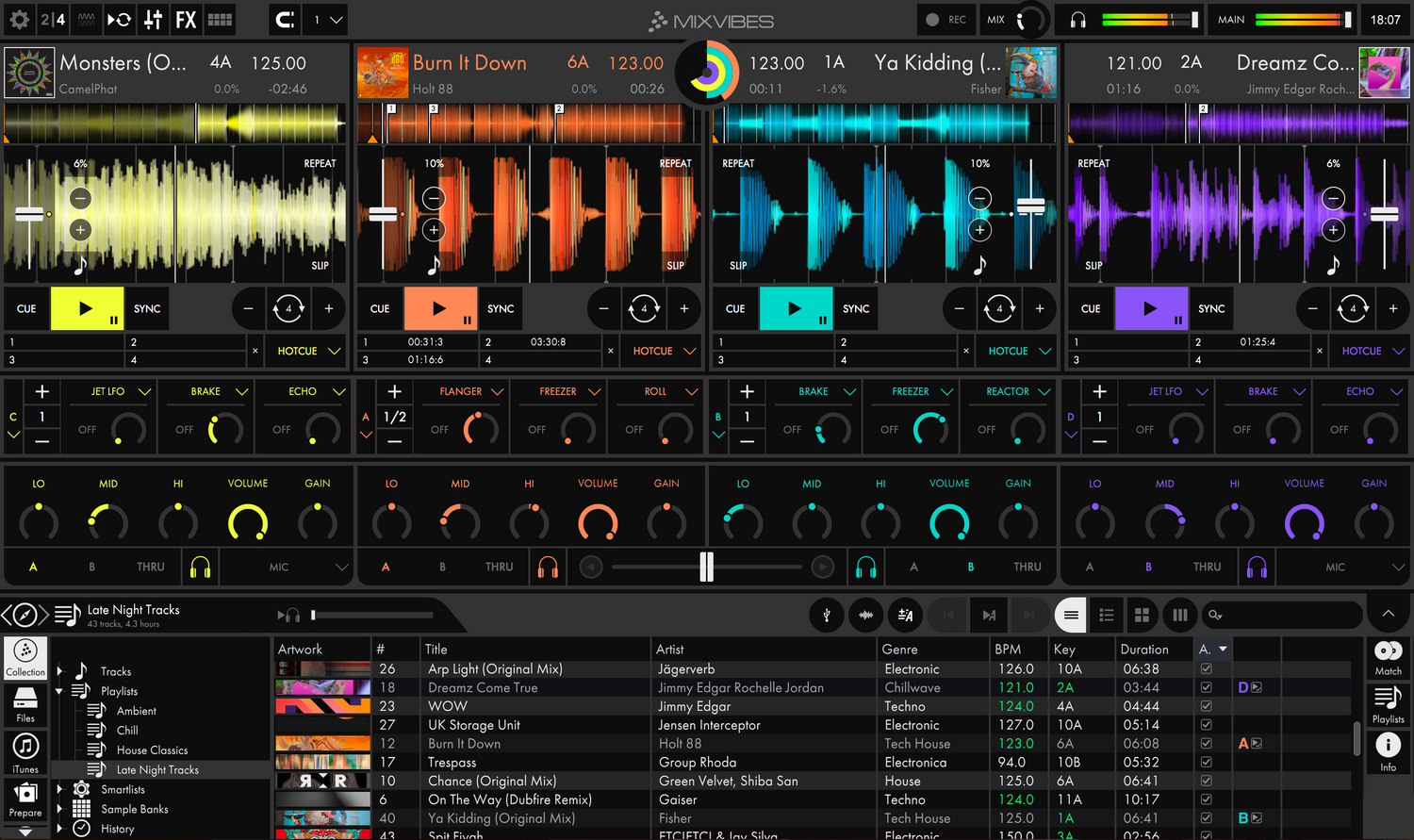 Gør hver mix unik. Du kan spille med 4 player waveforms på samme tid og tilføje 3 synkroniserede audio effects pr. player. Du kan også skabe dine egne effekter ved hjælp af Tweaker.