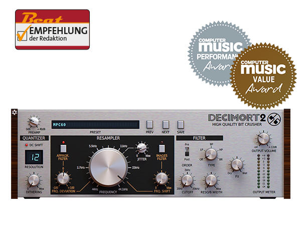 Premium klasse bit crusher med komplekse og avancerede signalbehandlingsalgoritmer inden for Decimort simulerer adfærden af hele samplingvejen, som findes i hver AD/DA converter.