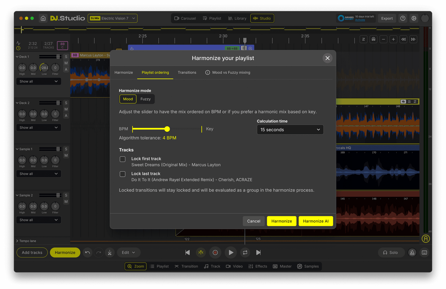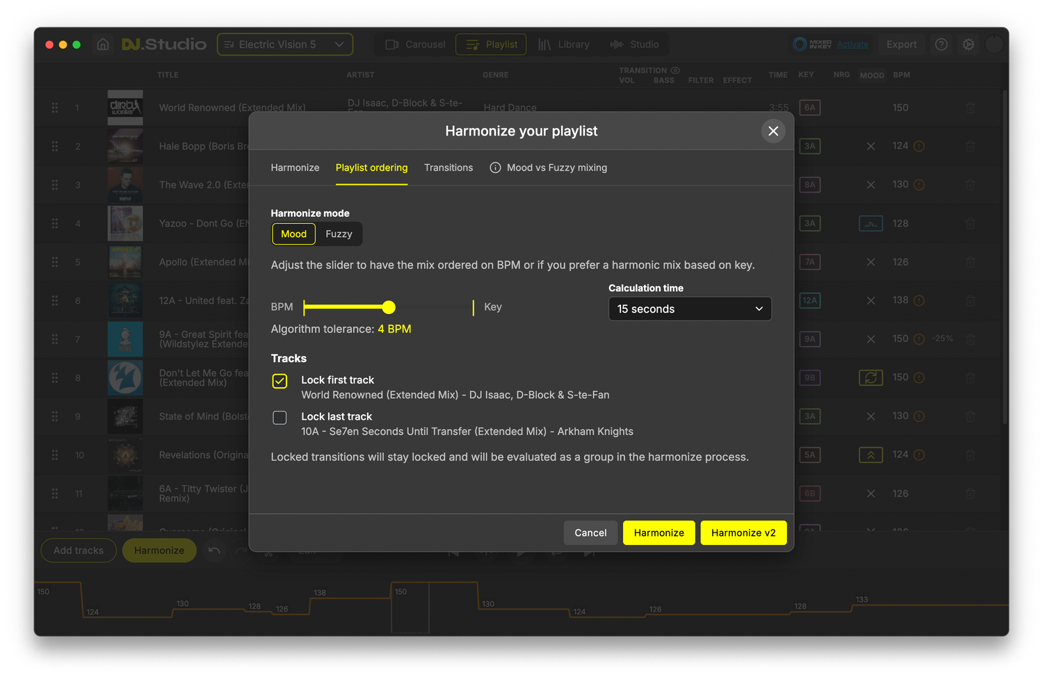 - Harmoniser din playliste ved hjælp af millioner af beregninger for perfekt at ordne numre efter tempo og toneart.
