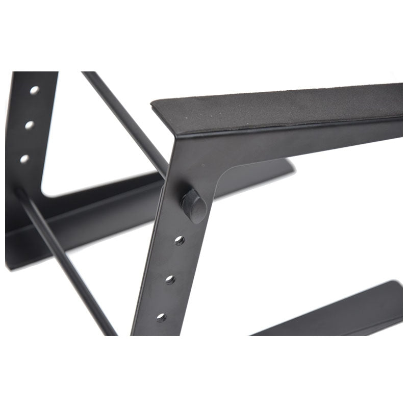 DNA LT1is astable, compact stand for a laptop, sound mixer, DJ controller, projector or other type of device. The stand is made of 2millimeter black powdercoated steel, making its surface resistant to abrasion. The asset of the stand is a fourstage height adjustment from 17 cm to 32 cm.The laptop stand is equipped with long arms, which provide good stability to the whole structure, and additional rubber foam prevents the equipment from slipping. The DNA LT1 stand is also very wide. As a result, it is capable of holding even a 17 laptop. Its a convenient solution for any DJ, sound engineer, lighting designer as well as music bands. With the DNA LT1, your laptop will become an integral part of your mixing equipment!Technical specificationMaterialsteelMaterial thickness2 mmSurfacepowdercoatedColorblackHeightadjustable 17 32 cmWidth23.5 cmTopcovered with nonslip foamTypefor 12 to 17 laptopsOriginal packaging and filling.