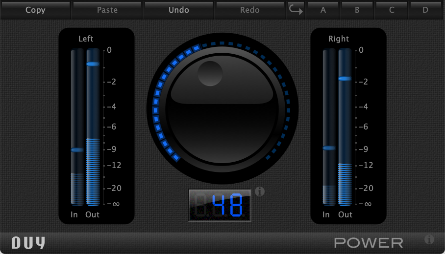 Duy's eksklusive "ILE" algoritme er hjernen bag denne smart konstruerede adaptive spektre dynamik processor. Den største fordel ved at bruge Power på dine spor er, at du ikke behøver at justere de sædvanlige parametre, der kræves i dynamikprocessorer: thresholds, knees, slopes, ratios, attack eller release tider. Det gør det automatisk for dig!
