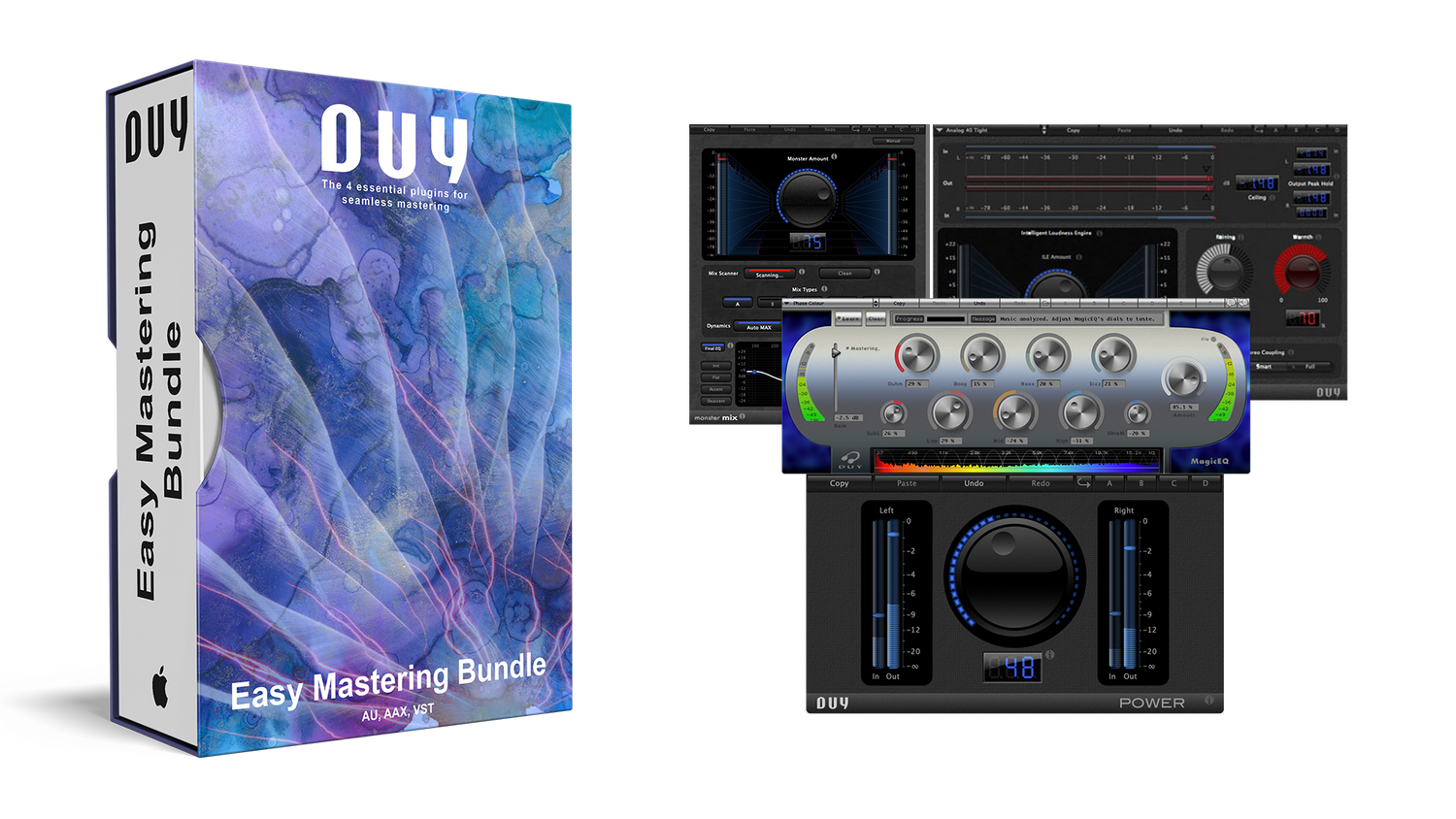 Med Easy Mastering Bundle behøver du ikke længere præcise monitorer for at masterisere dine musikproduktioner. Nu kan du gøre det med små højttalere eller endda hovedtelefoner derhjemme. DUY's intelligente software vil udføre en højpræcisions equalization for dig på få sekunder.