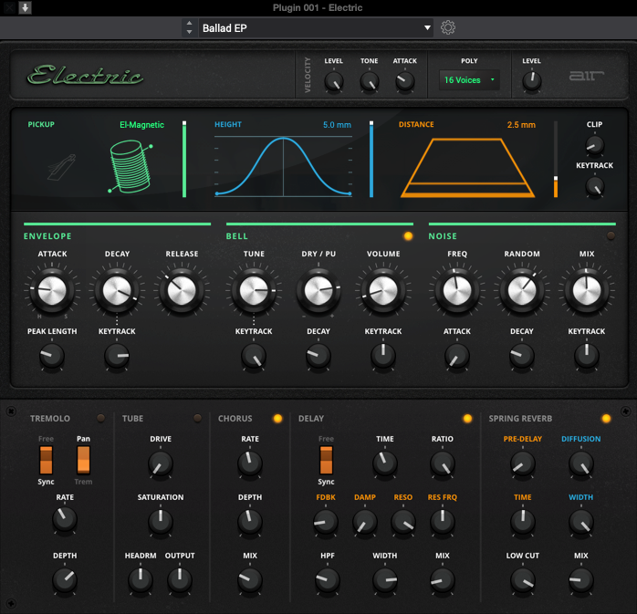 AIR Electric plugin er din nye komplette samling af elektriske klaverer. Vælg mellem et omfattende udvalg af legendariske keyboards som Rhodes, Wurlitzers, FM keyboards og mere, udviklet over årtier af forskning. Electric bygger stolt videre på arven af excellence fra AIR Velvet, der betragtes som det reference elektroniske klaverinstrument for Avids Protools, med en ny række af kraftfulde funktioner og lyde.