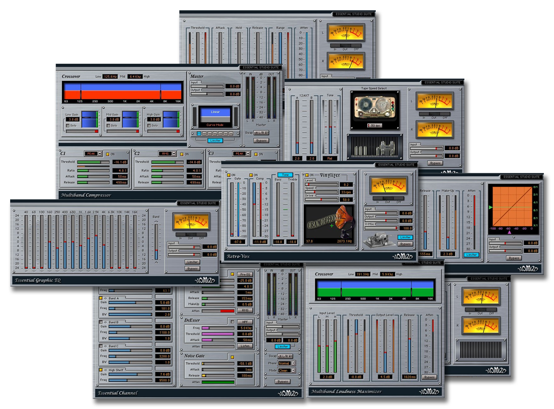 Uanset om du mixer dine multitracks ned til stereo, eller masterer dine endelige stereo mixes til CD-replikation, er Essential Studio Suite fyldt med den slags plug-ins, der har vist sig at være essentielle for nutidens musik. Og de er nemme at bruge, fordi de er designet af musikere til musikere.