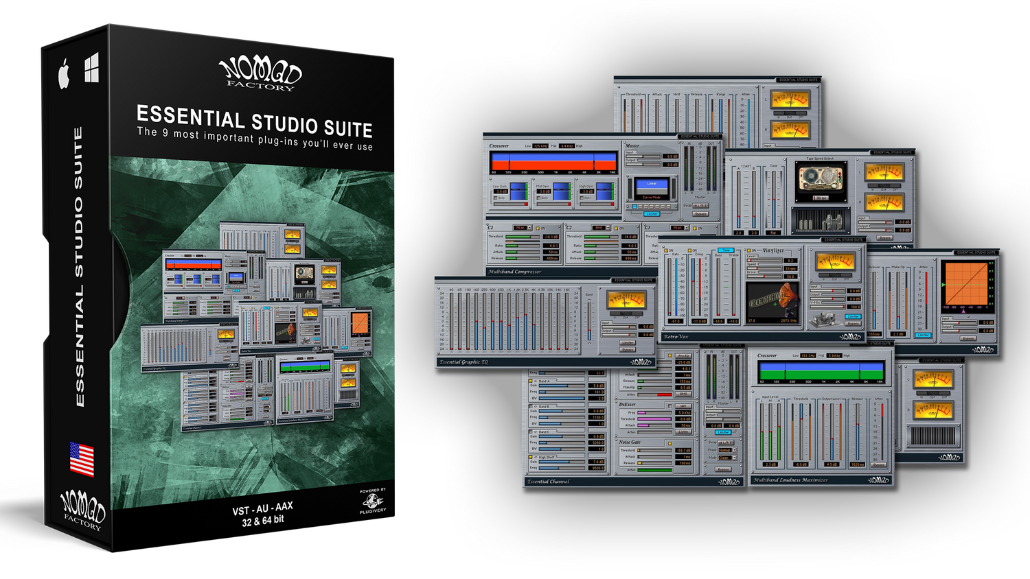 Ikke længere skal du lide under tørre, livløse numre, der mangler den kreative gnist, du har brug for for at skille dig ud fra mængden. Nomad Factory's Essential Studio Suite giver dig de 9 vigtigste plug-ins, du nogensinde vil bruge.