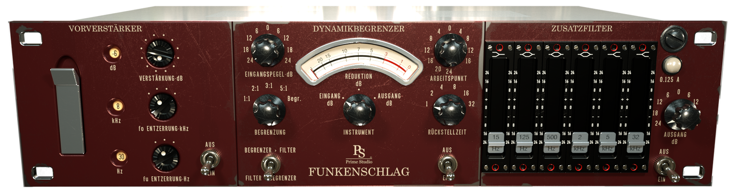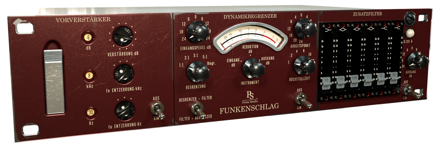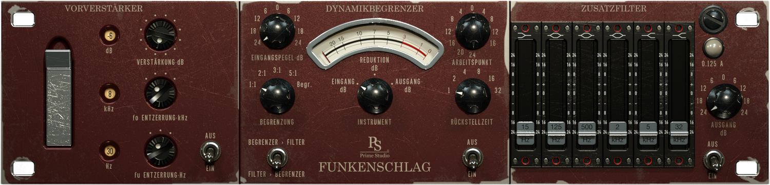 Funkenschlag er et mono / stereo kanalstrip plug-in med tre kombinerbare værktøjer, der farver lyden af dine spor.