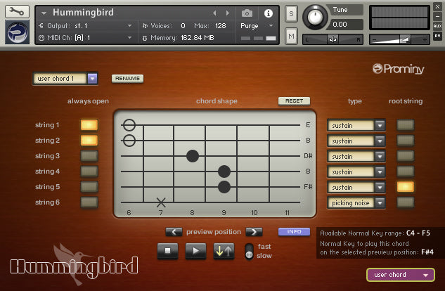 Ultra realistisk lyden Virtual Acoustic Guitar - Den ægte lyd af Gibson® 1963 Hummingbird inkluderer ca. 80GB*, 89.000 samples
