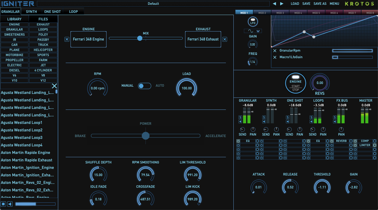 Igniter er den nye industristandard for nemt at skabe lydeffekter til både virkelige og sci-fi køretøjer og motorer. Uanset om du arbejder med audio post eller game audio, giver Igniter dig mulighed for at designe, udføre og automatisere enhver kompleks køretøjsadfærd direkte i din DAW – fra sportsvogne, motorcykler, fly, helikoptere, rumfartøjer og andre motorlyde til bevægelige ambiencer, teksturer, Foley eller hvad der end vækker din fantasi.