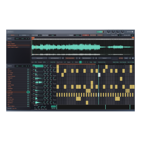 - Built in Slice sequencer allowing you to program slice patterns