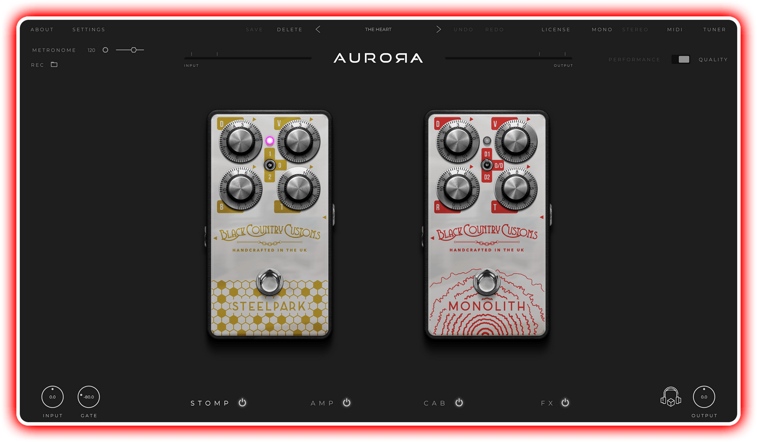 BCC-Monolith og BCC-STEELPARK tilbyder dig fuldt fungerende versioner af hver pedal, hvilket giver dig fuld kontrol over at indstille den helt rigtige mængde distortion eller clean boost.