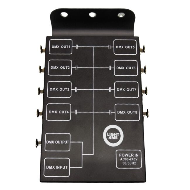 Det medfølgende monteringsbeslag gør installationen hurtig og problemfri – både i mobile setups og faste installationer. LIGHT4ME XSPLIT 8 er et oplagt valg for teknikere og arrangører, der ønsker driftssikker DMX-signalfordeling i høj kvalitet.