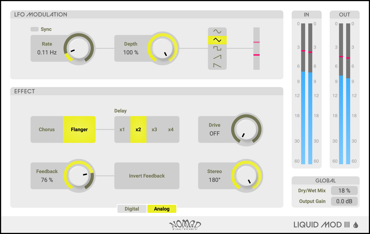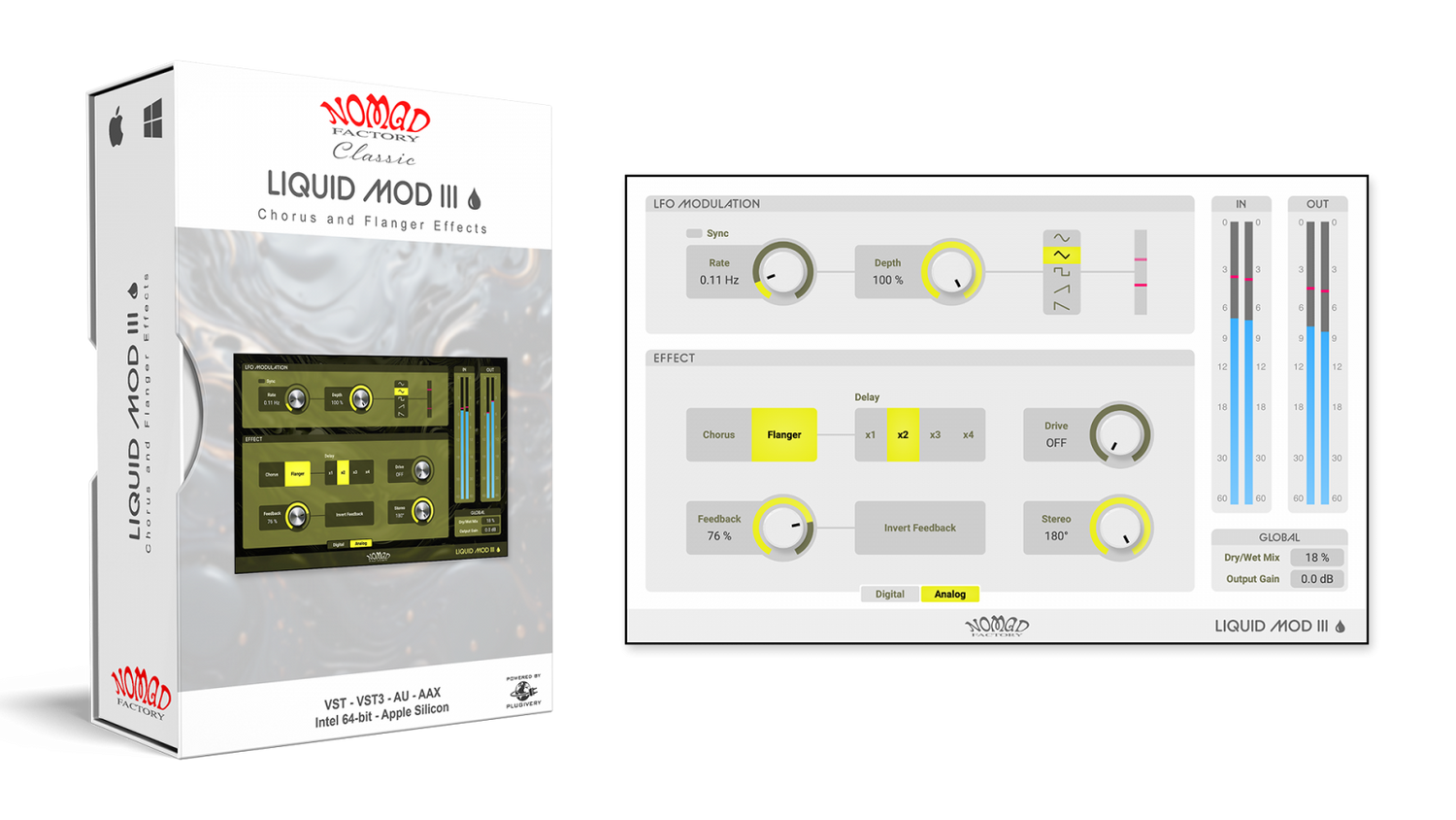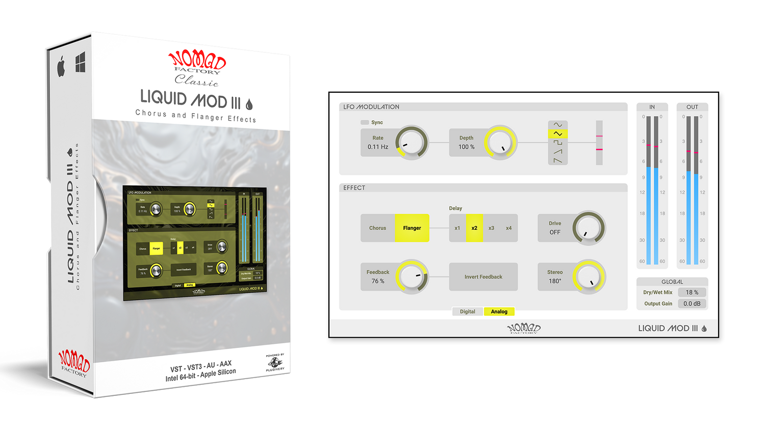 Liquid Mod III fanger de klassiske modulationslyde, der har formet årtier af musikproduktion. Fra silkeagtig chorus og rummelig flanging til ekspressiv vibrato, bringer denne plugin autentisk vintage karakter til dine mixes.