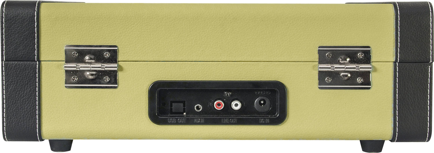 Cool grøn pladespiller i retrolook og kuffertdesign. Tag afspilleren med overalt. Indbyggede højttalere sikrer god lyd uden besvær. Afspil musik fra Bluetooth, USB og SD-kort - du går aldrig ned på musik. Optag dine LPer til USB og SD-kort, så du altid kan høre de sprøde toner fra vinylpladen. Udgang til hovedtelefoner. Afspilningshastighed 33/45/78 rpm.