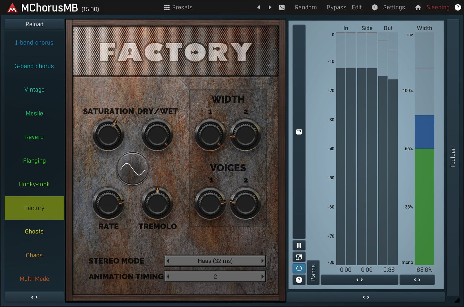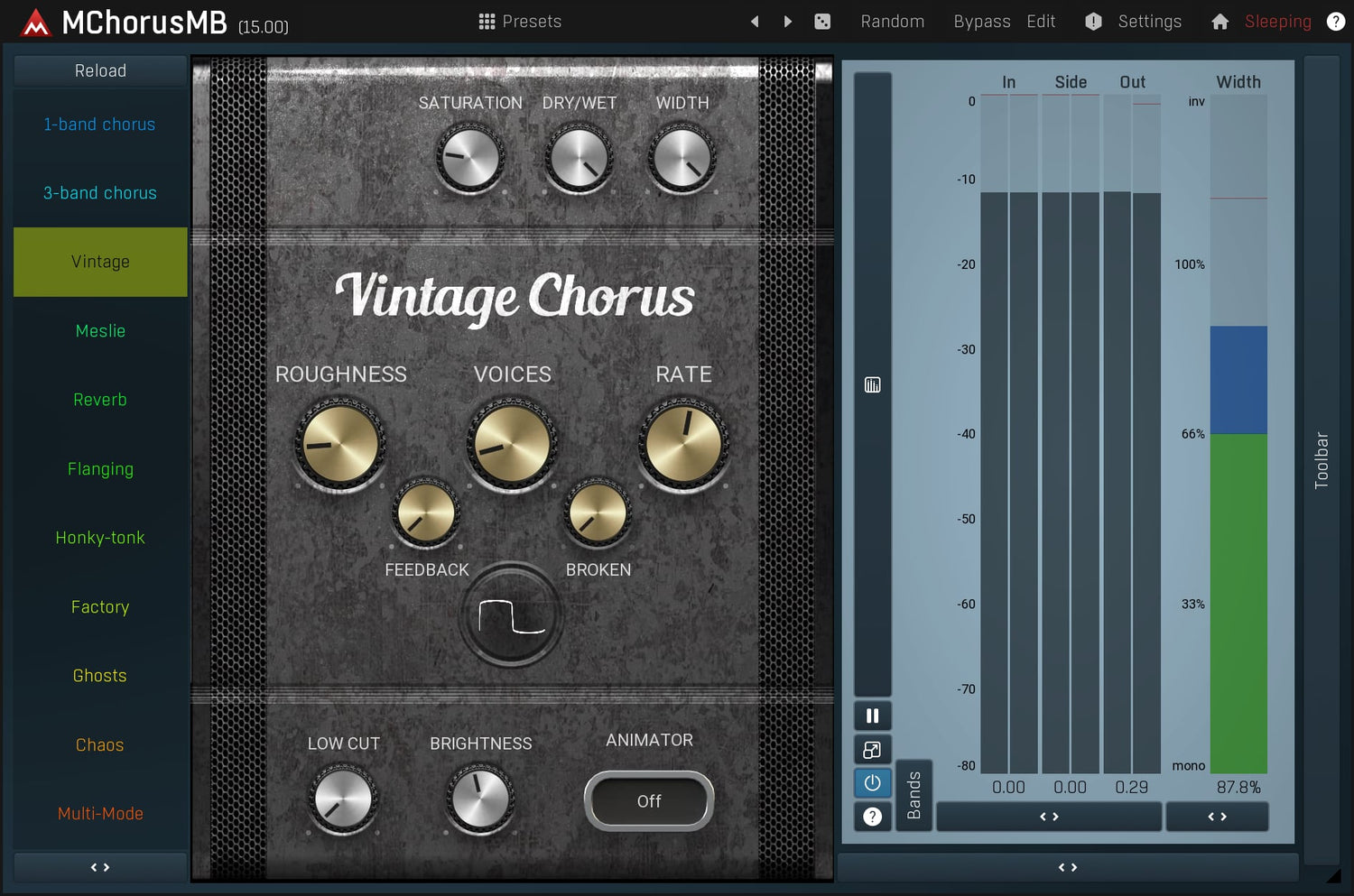 Chorus er et essentielt værktøj til guitarer og keyboards for at skabe rum og bredde. MMultiBandChorus er ikke kun potentielt den bedst lydende chorus-effekt på markedet, men også den mest alsidige. Hvis du sigter efter en ultimativ chorus med både lydkvalitet og funktioner, så er denne plugin, hvad du har ledt efter.