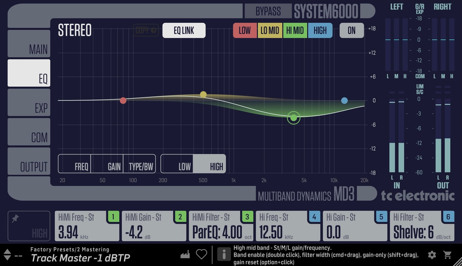 MD3 NATIVE er kernen i TC Electronic multiband dynamiklyd. Den tilbyder Mono, Stereo, Mid/Side drift og inkluderer 3-bånds transparent Expander/Compressor, fleksibel EQ og moderne Peak/True-Peak Limiting teknologier.
