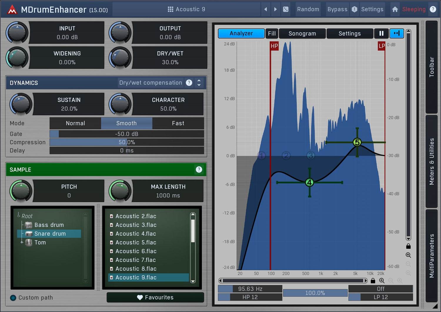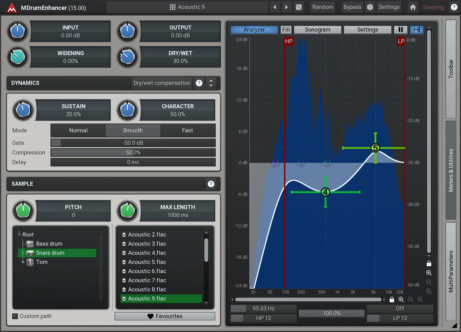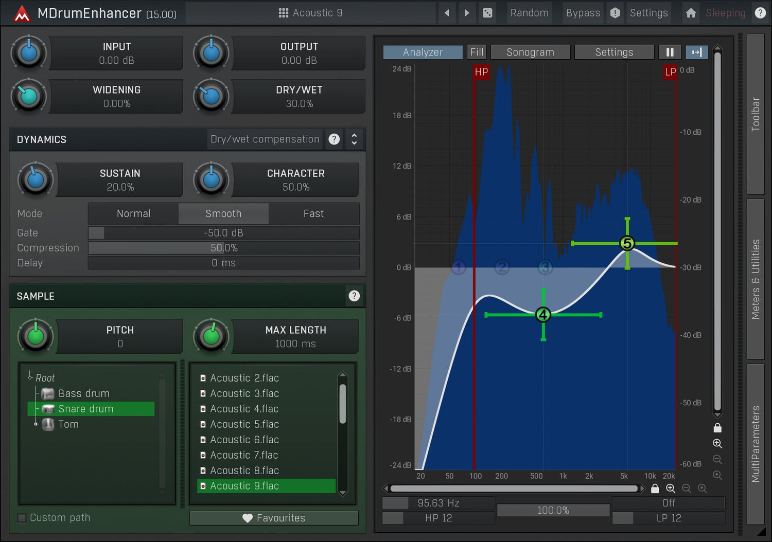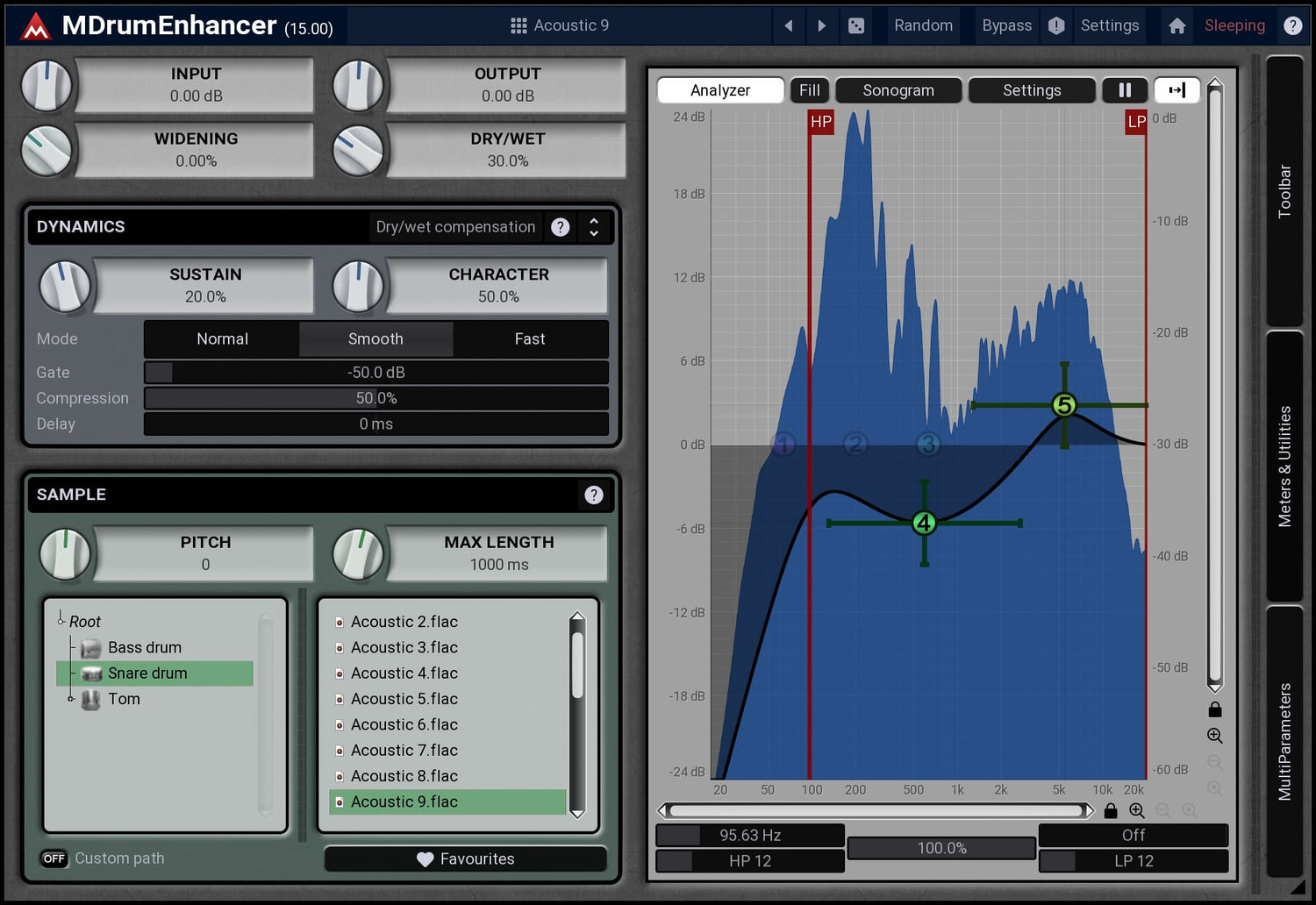 MDrumEnhancer er et unikt værktøj, der følger dit trommespor og syntetiserer sit eget signal ved hjælp af samples for at få det til at lyde stort og fyldigt, uden de problemer, som trommeudskiftning lider under.