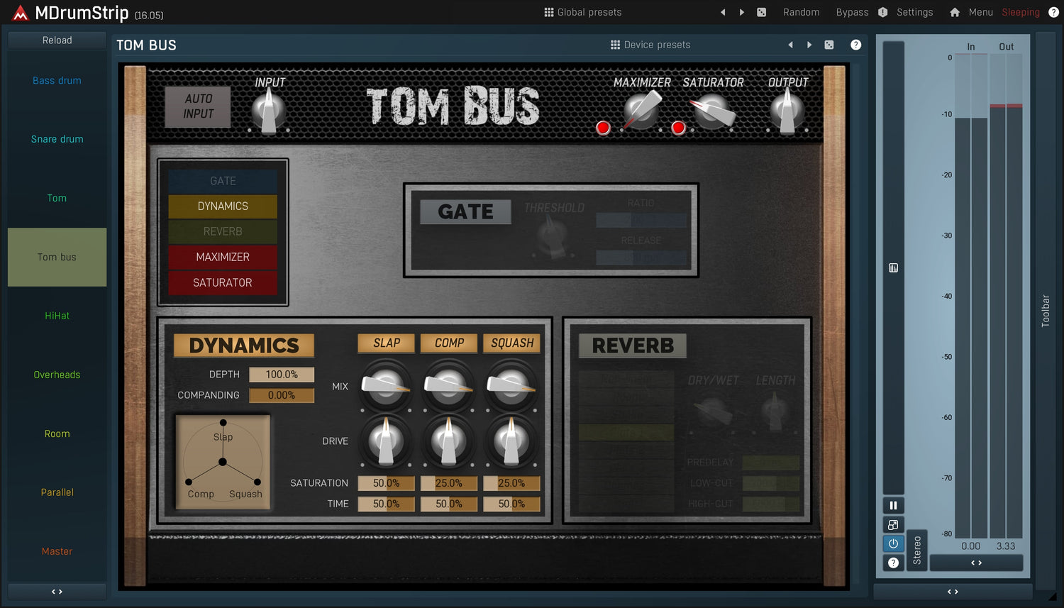 MDrumStrip er designet til én specifik opgave og indeholder alt, hvad der er nødvendigt for at udføre den. Ingen grund til flere kompressions- og EQ-plugins, rumklang osv. Følg blot instruktionerne og lav mixet. Normalt er der kun behov for minimale justeringer, da det smart analyserer dit lydmateriale og tilpasser de interne algoritmer til det. Det er hurtigt og nemt. Men MDrumStrip indeholder også mange mere avancerede kontroller, hvis du ønsker at gå i dybden. Med nul latency kan du endda tage MDrumStrip med ud og bruge det live.