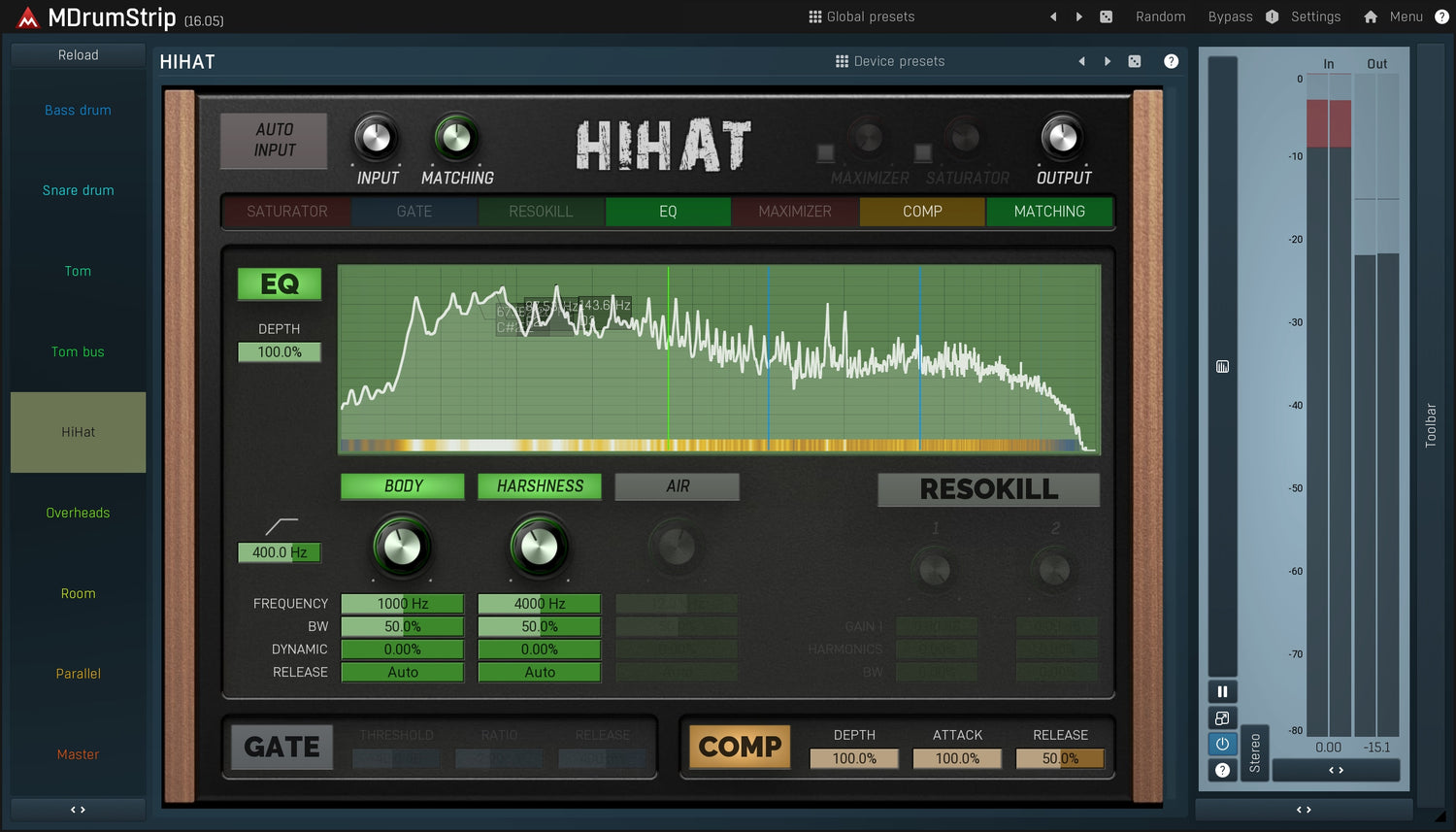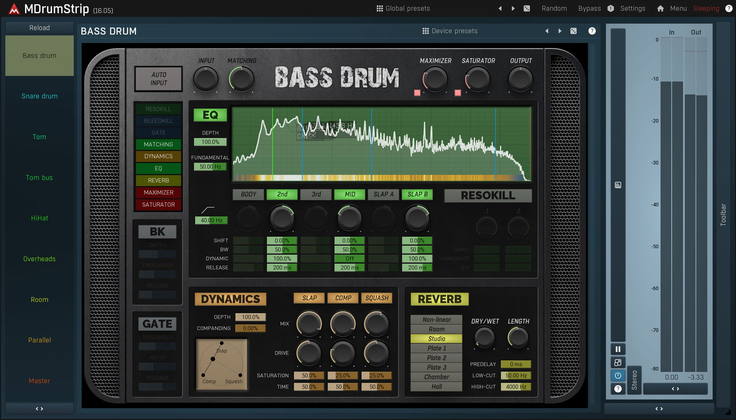 MDrumStrip er virkelig den eneste akustiske trommelydsmiksning plugin, du nogensinde får brug for! Det giver dig en hurtig og enkel måde at mikse moderne, punchy trommer på med alle instruktioner inkluderet. Minimal indlæringskurve og ingen gætterier. MDrumStrip er specifikt lavet til moderne rock og metal, men det er også velegnet til andre genrer.