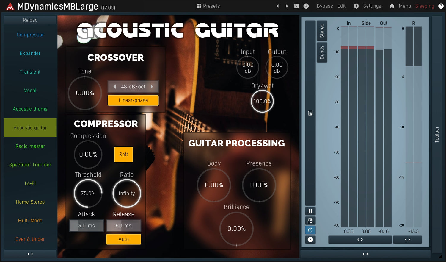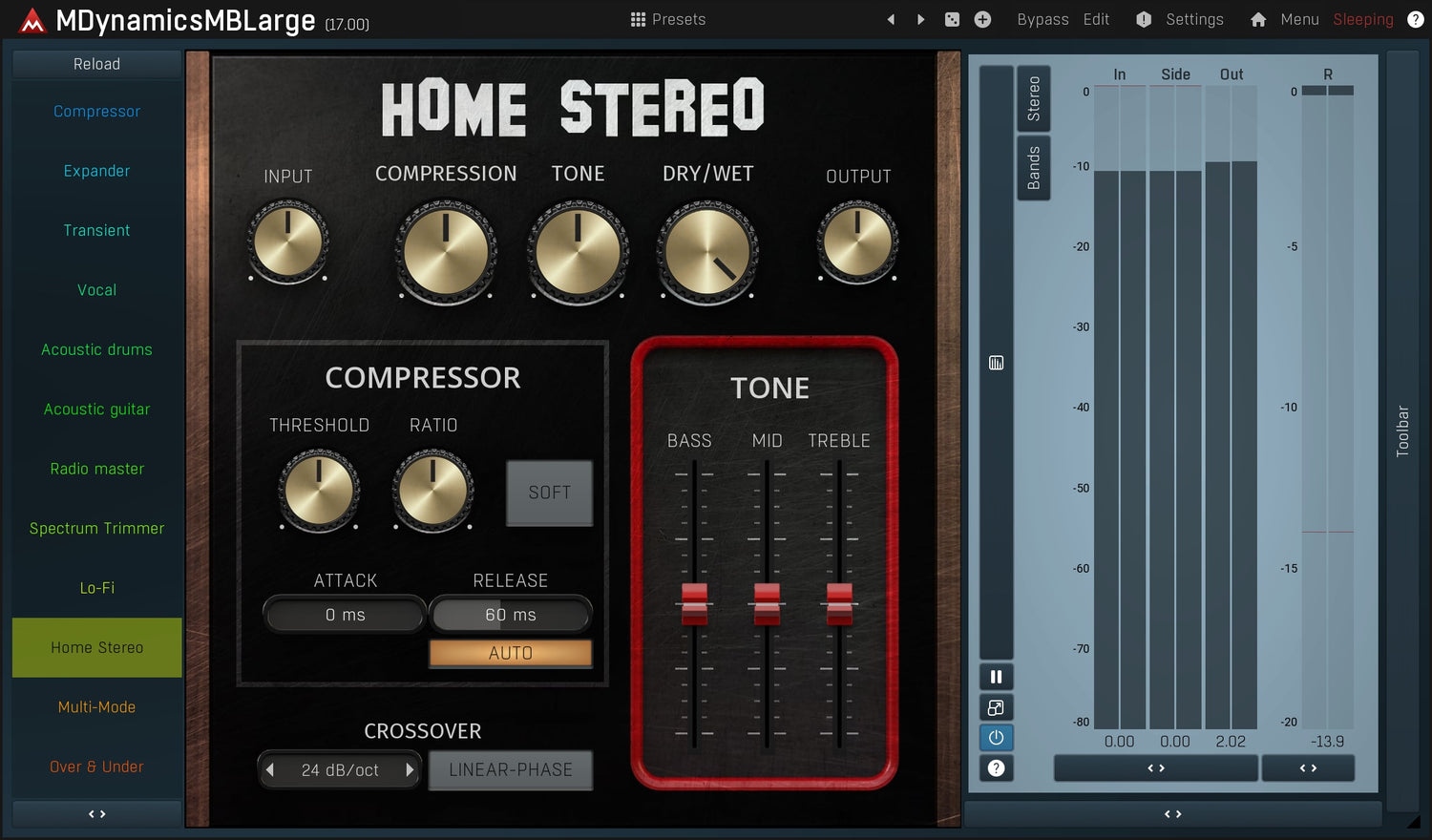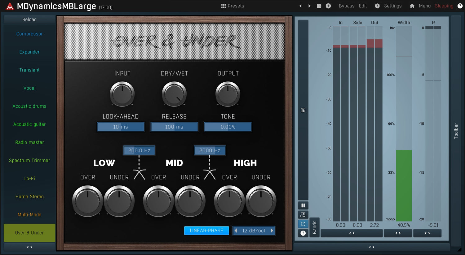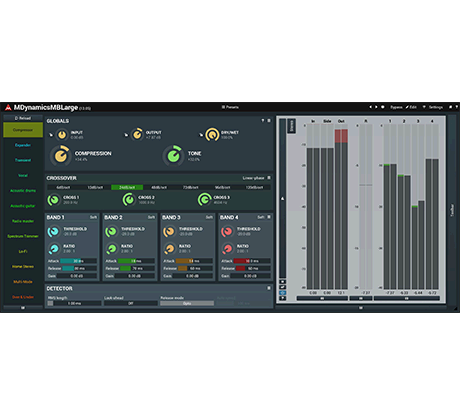 MDynamicsMB kan opdele inputtet i 6 separate frekvensbånd, hvilket giver analoge crossover med op til 120dB/oktav separation, lineær fase og hybride crossover. Hvad du gør med hvert af disse bånd, er op til dig.